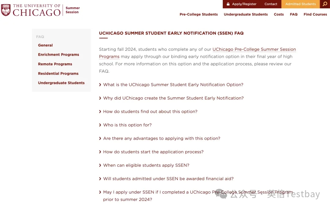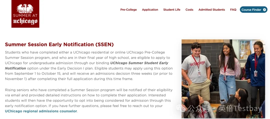 2024 年9月起,凡是参加过芝大夏校项目的学生(无论线上或线下、住宿或走读),都将获得一个专属申请批次的资格——SSEN,也就是大家看到的“ED0”,一旦录取就有绑定性,录取学生必须要入学。