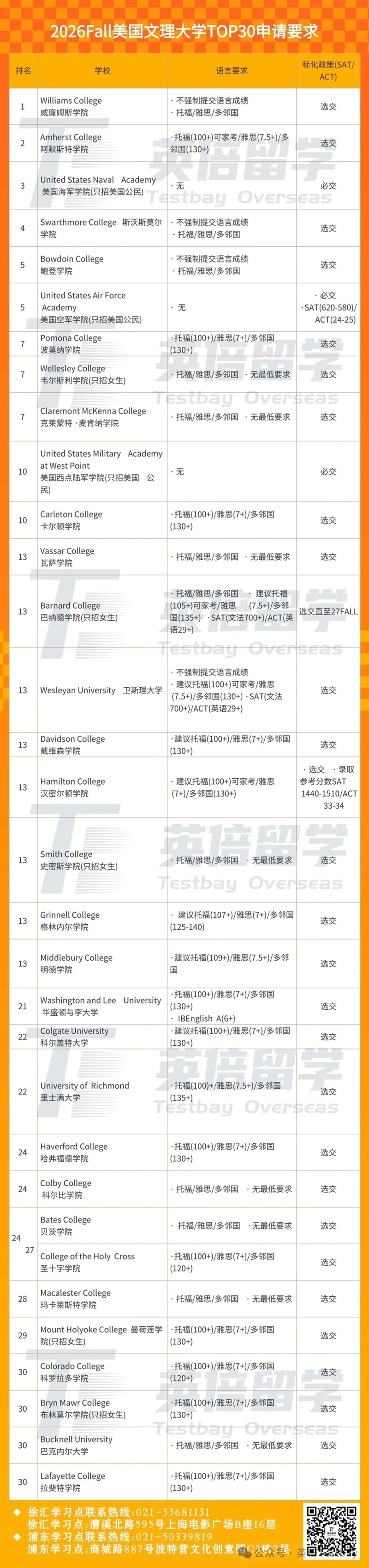 文理学院TOP30申请要求