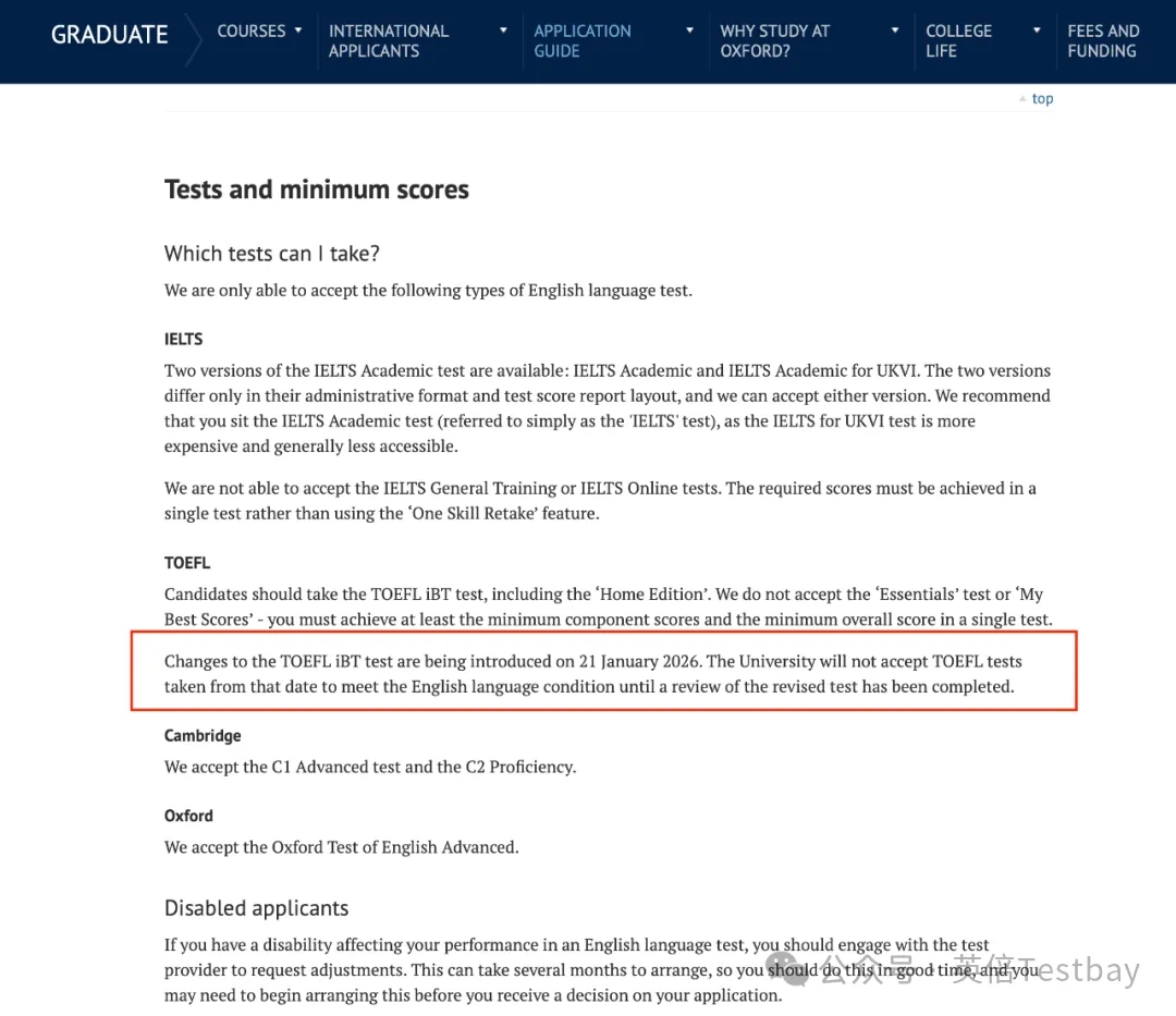 此前有消息称剑桥/牛津表示“不接受”2026年新托福, 但实际上, 他们并没有不认可2026新托福成绩。