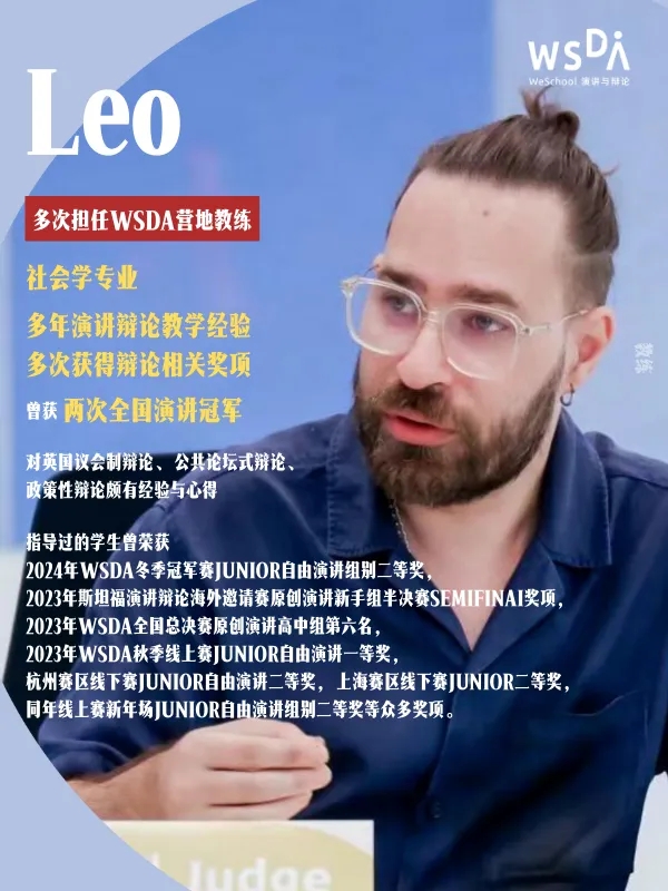 对于初次接触戏剧和表演性演讲的孩子,Leo的建议简单却充满智慧:“选你真正热爱的,而不是听起来高级的。如果你为莎士比亚头疼,就不要强迫自己。找到一个让你眼睛发亮的故事,你才会愿意为它反复打磨,在不断的练习中收获成长。”