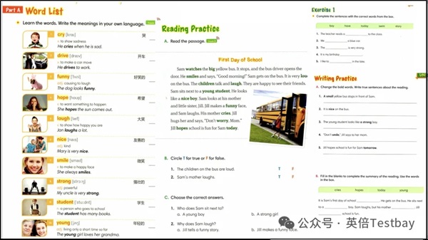 1000 basic words主要涵盖听说读写高频生活词汇,内页全部是彩色,视觉上能够吸引孩子们的阅读兴趣,每个单词都配有图片和音频,形象生动,练习中设计了游戏题目,趣味性强,而且还将单词巧妙融入到阅读和写作中,多维度训练孩子们的听说读写能力。