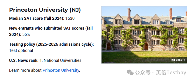 即便采取标化可选政策的学校,仍有不低比例的学生提交了SAT成绩。比如普林斯顿大学推行 “标化可选” 政策,但仍有56%的学生递交了SAT成绩。