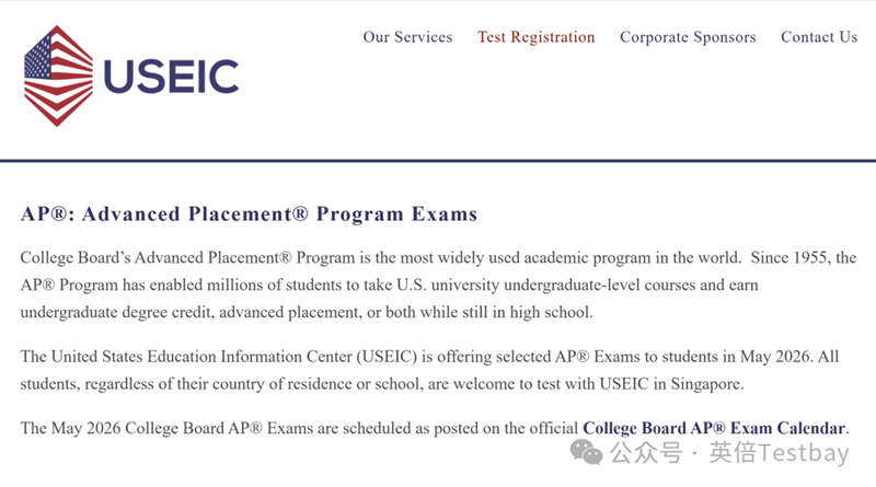 新加坡USEIC考评局2026年AP考试第二轮报名通道已开启! 备战2026年AP的考生和家长们看过来,作为最早开放的社会考生考区之一,新加坡是许多非AP校学生的首选。今天倍倍带来USEIC新加坡考区最全报名指南,带你抢占先机!