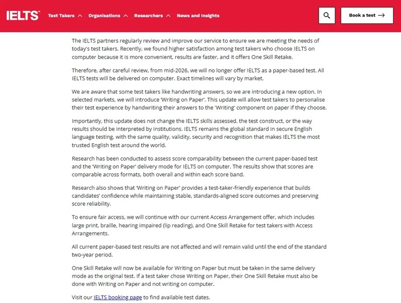 中国台湾:2026年1月31日起,所有雅思考试全面切换机考,纸笔考正式下线。