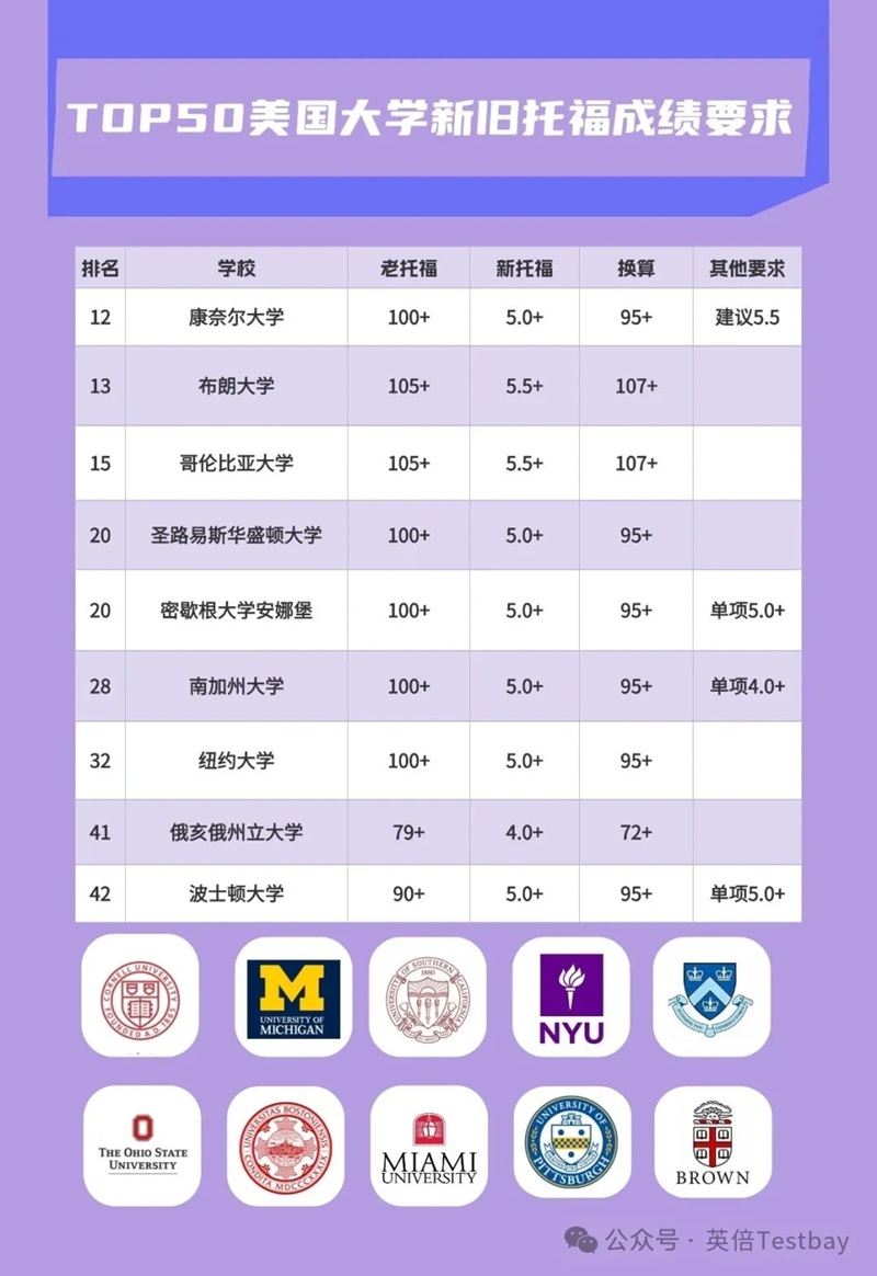 新托福院校要求