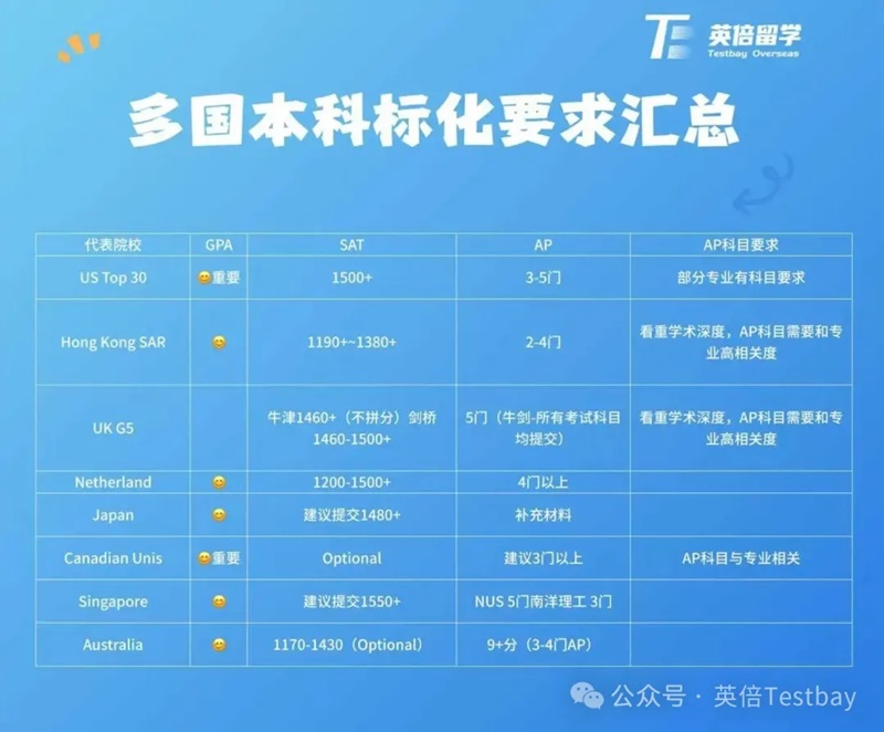 多国联申已成为应对留学不确定性的重要策略,越来越多学生选择同时申请多个国家以分散风险、增加录取机会。大会中盘点了多个国家标化申请要求。