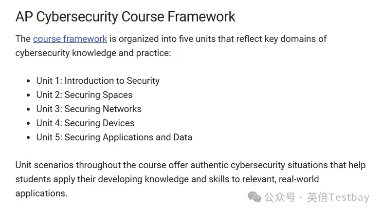 核心内容:分为五个单元,反映了网络安全知识和实践的关键领域。课程提供真实的网络安全情况,帮助学生将他们正在发展的知识和技能应用到相关的实际应用中。