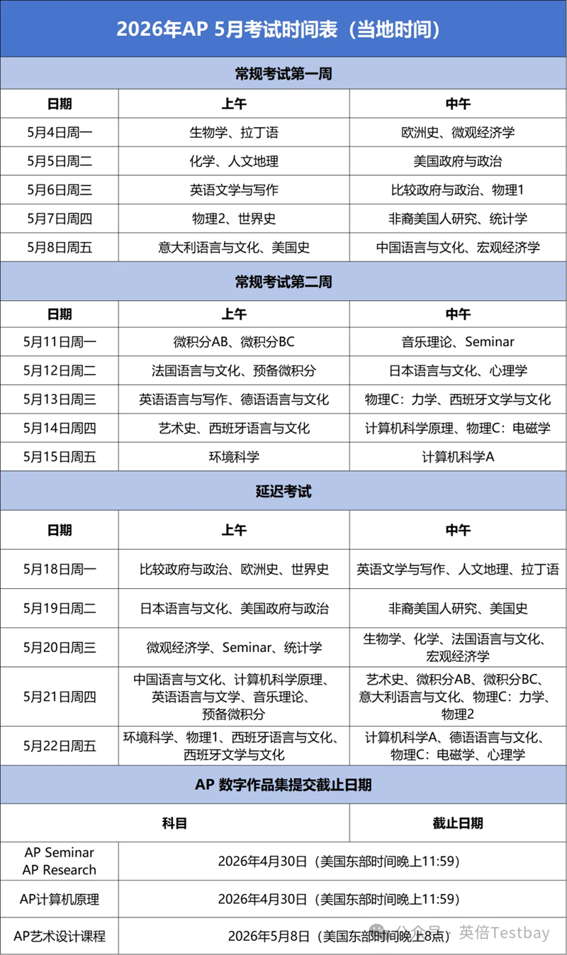 2026AP考试时间
