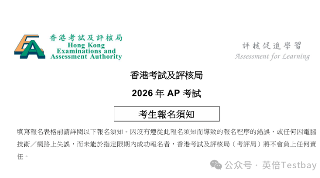 HKEAA官网更新了2026年AP考试的考生须知,考试详情可查阅下载的准考证及考生须知。