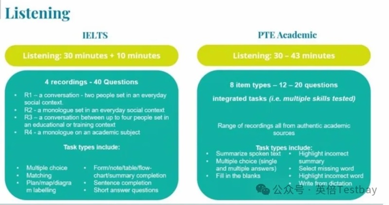 听力难度:PTE>雅思