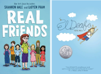 ● Autobiographical Graphic Novels: Memoirs from the author's life depicted with both words and art. Example: Real Friends by Shannon Hale, El Deafo by Cece Bell.